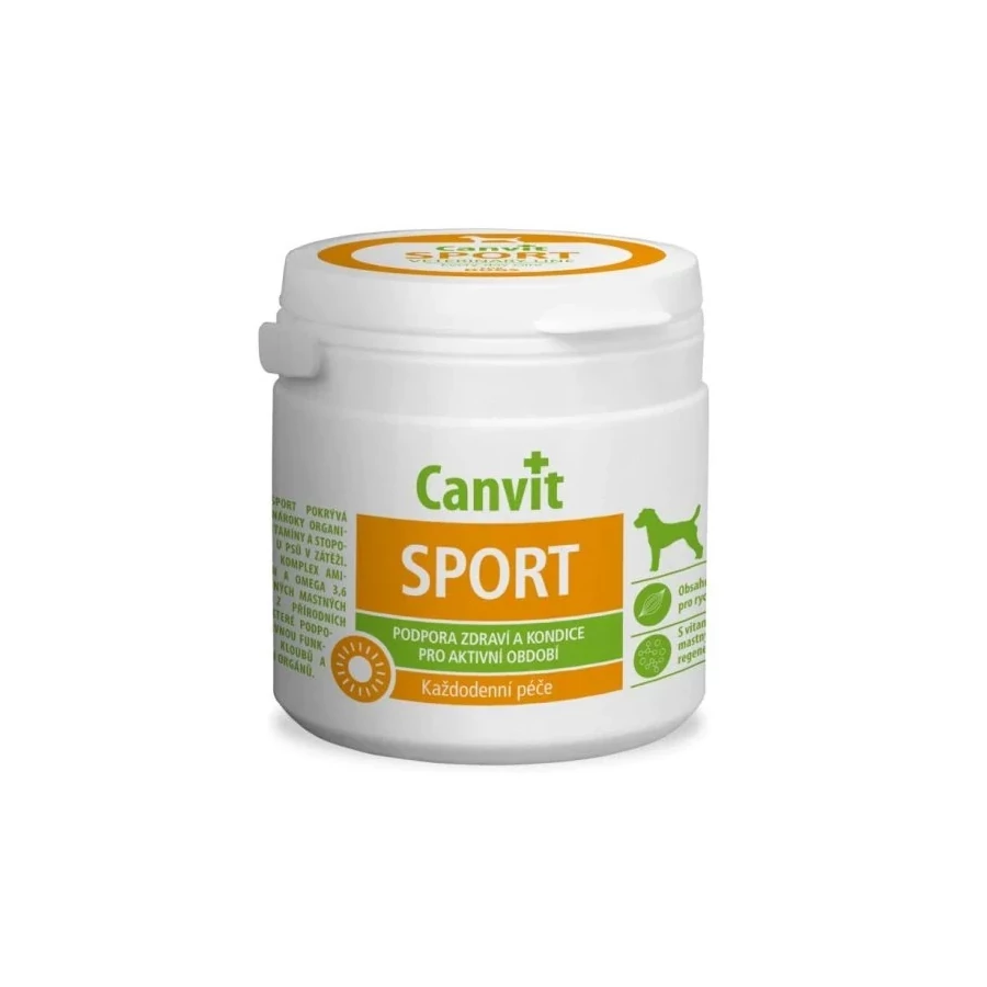 Canvit Sport - sportoló- és munkakutyák számára kifejlesztett készítmény mozgásrendszerük támogatására és regenerációjára. A Canvit Sport készítmény fedezi a különösen leterhelt kutyák megnövekedett vitamin- és nyomelemszükségletét. Természetes forrásból származó aminosavakat és omega 3,6-telítetlen zsírsavakat tartalmaz, amelyek támogatják az izmok, ízületek és egyéb szervek megfelelő működését.