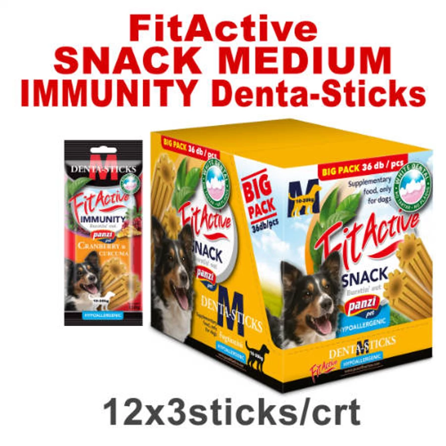 FitActive SNACK Denta-Sticks Hypoallergenic Immunity "M" - Jutalomfalat (vörösáfonya, Kurkuma) (12dbx150g/#)