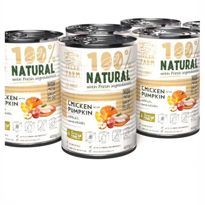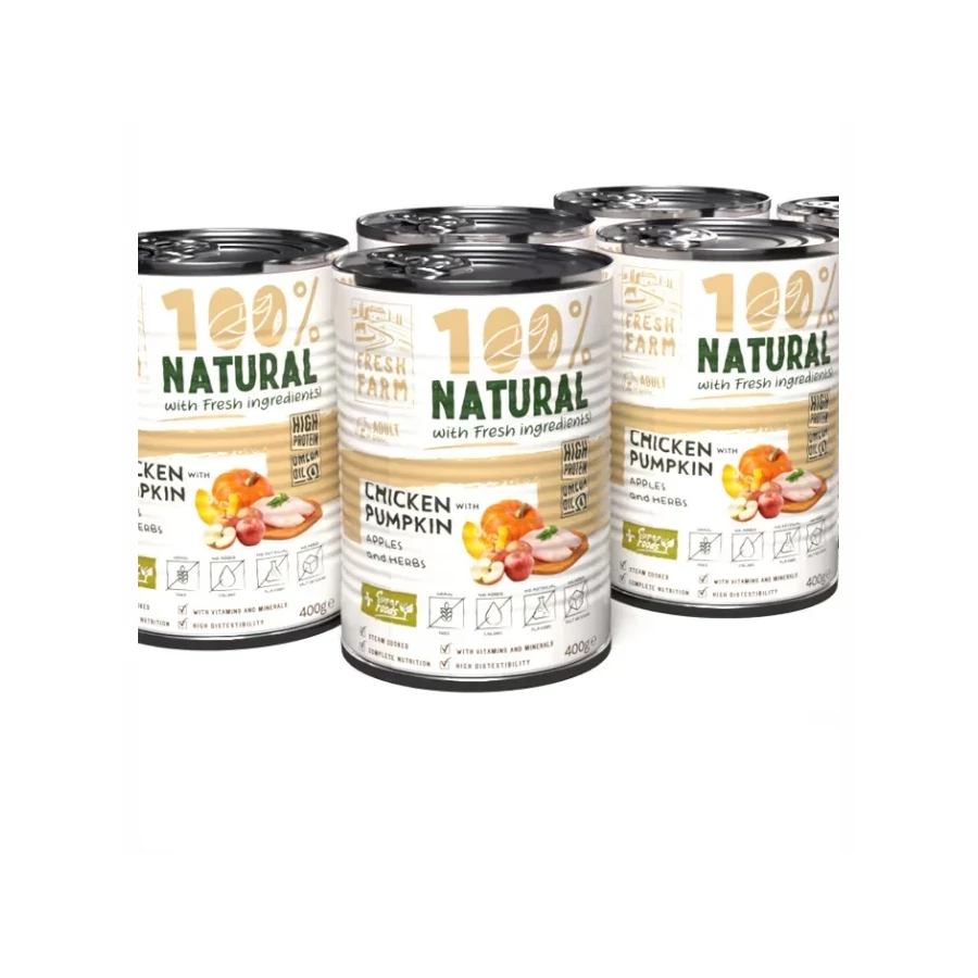 Fresh Farm nedves kutyaeledel, pástétom csirkével, sütőtökkel, almával és gyógynövényekkel, 6x400g