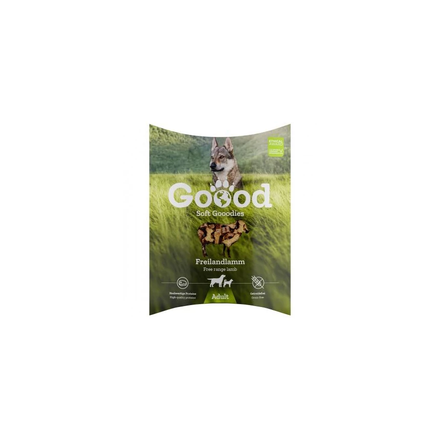 Puha Gooodies jutalmfalataink hús vagy hal, bajor zöldségek és a Goood létfontosságú összetevőinek kiegyensúlyozott egyvelege. A csomagolás újrahasznosítható, a tartalom pedig 100%-ban klímasemleges. Kutya jutalomfalataink természetközeli összetétele nem tartalmaz cukrot, mesterséges színezéket, ízfokozót vagy tartósítószert, és még az érzékeny gyomrú kutyusok is bátran fogyaszthatják. A Gooodies elbűvölően puha és könnyen emészthető. Kutyusod imádni fogja!