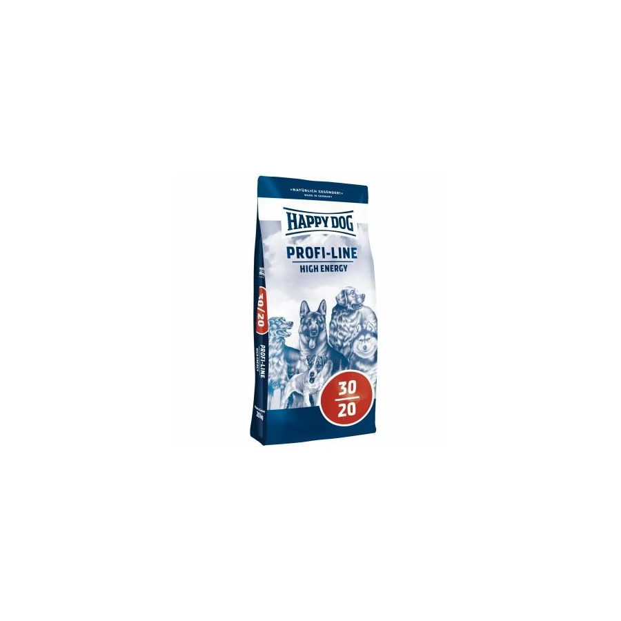 Happy Dog Profi 30/20 teljes értékű eledel magas energiaszükségletű, felnőtt kutyák számára. Az értékes állati fehérjéknek, valamint az értékes gabona-összetevőknek köszönhetően ezt a terméket nagyon szívesen fogyasztják és könnyen megemésztik még az érzékeny kutyák is. Nem tartalmaz szóját és más növényi fehérjekivonatokat. Németországban gyártva, a legszigorúbb minőségellenőrzési eljárások mellett.