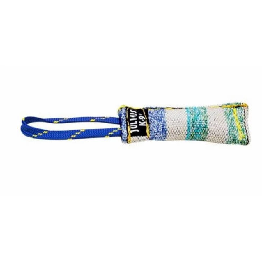 A Julius-K9 francia ütőzsákot professzionális kiképzők és lelkes gazdik egyaránt ajánlják. Strapabíró, harapásálló francia szövetből készült, így ideális húzós játékhoz, apportírozáshoz és motivációs tréninghez. Egy vagy két fogóval kapható, amelyek stabil tartást biztosítanak edzés közben. Tökéletes választás kölyök és felnőtt kutyáknak egyaránt, hiszen biztonságos, jól bírja a harapásokat és támogatja a helyes harapástechnika kialakítását. Könnyen tisztítható, nedvességálló, mindennapos használatra tervezve.