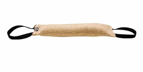 A Julius-K9 francia ütőzsákot professzionális kiképzők és lelkes gazdik egyaránt ajánlják. Strapabíró, harapásálló francia szövetből készült, így ideális húzós játékhoz, apportírozáshoz és motivációs tréninghez. Egy vagy két fogóval kapható, amelyek stabil tartást biztosítanak edzés közben. Tökéletes választás kölyök és felnőtt kutyáknak egyaránt, hiszen biztonságos, jól bírja a harapásokat és támogatja a helyes harapástechnika kialakítását. Könnyen tisztítható, nedvességálló, mindennapos használatra tervezve.