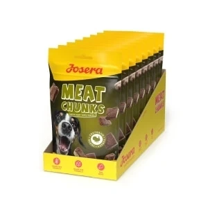MEAT CHUNKS TURKEY Pulykahúsos snack praktikus porciókban A Josera Meat Chunks Turkey minden falatja igazi élvezet! A 90%-os hústartalomnak és a finom pulykahúsnak köszönhetően különösen ízlik a kutyáknak. Ráadásul kíméletesen szárítjuk. Ezek a praktikus, előre porciózott falatok gabona- és cukormentesek. Az E-vitamin és az L-karnitin támogatja az aktív kutyákat a napi testmozgásban. Csomagolás mérete: 70g 8x70g