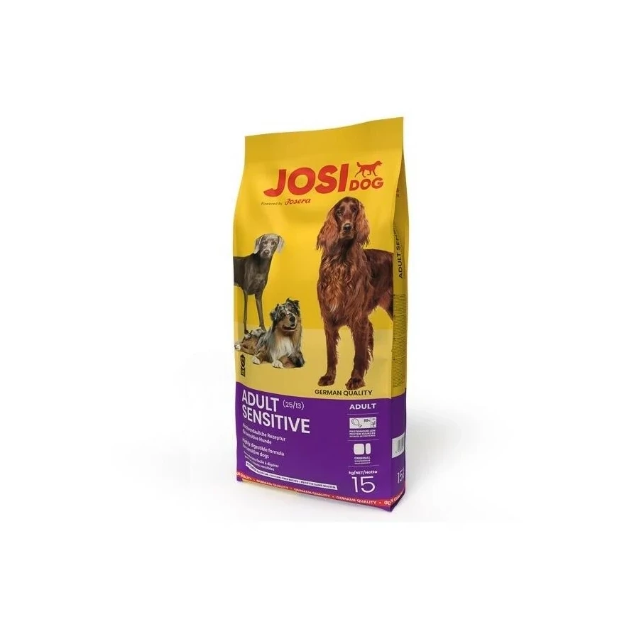 JOSIDOG ADULT SENSITIVE Vigyáz az érzékeny kedvencekre! Kiegyensúlyozott, gluténmentes receptúrájának köszönhetően ez az étvágygerjesztő kutyaeledel könnyen emészthető és remek tápanyagforrás. JosiDog Adult Sensitive: különleges gondoskodás érzékeny felnőtt kutyák számára. *Teljes értékű eledel érzékeny kutyák számára *Ez a gluténmentes, könnyen emészthető receptúra az érzékeny kutyák számára is alkalmas *A fehérjetartalom 80%-a állati eredetű *Gluténmentes receptúra *A LIFE PROTECT pecsét* jelzi az egyedülálló hatóanyag-összetételt, amely támogatja az erőnlétet és a jó közérzetet. *Kiegyensúlyozott, könnyen emészthető összetétel *Hozzáadott szója, cukor vagy tejtermék nélkül *Mesterséges színezékektől, aromáktól és tartósítószerektől mentes Teljes értékű eledel felnőtt kutyák számára Összetétel: szárított baromfi fehérje, rizs, teljes kiőrlésű kukorica, baromfizsír, cukorréparost, hidrolizált baromfi fehérje, ásványianyagok, őrölt cikória gyökér (természetes inulinforrás), Új-Zélandi zöldhéjú kagyló (Perna canaliculus) szárított húsa Antioxidánsok A gondosan összeválogatott antioxidánsok (A-vitamin, E-vitamin és szelén) védik a sejteket az oxidatív szabad gyökök által okozott károsodástól. Erősítik az immunrendszert, enyhítik a gyulladásos folyamatokat és lassítják az öregedést. Taurin A taurin fontos szerepet játszik a sejtmembránokon keresztül történô kalciumáramlás szabályozásában, egyes szövetek (pl. szívizom) normális mûködésében. A taurin jótékony hatással van a szívmûködésre, a látásra és a fertilitásra, emellett antioxidáns hatása is van. Inulin Az inulin fontos prebiotikum, amely a probiotikum (hasznos bélbaktériumok) tápláléka. Az inulin elősegíti a jótékony hatású bélbaktériumok szaporodását, ezzel hozzájárul az egészséges bélflóra kialakulásához. Glükóz-aminoglikánok A glükóz-aminoglikánok a porcszövetek építô elemei. A glükózamin emeli az ízületekben lévô hialuronsav szintjét, amely alapvetô összetevôje az ízületi folyadéknak (ízületek kenôanyaga). A glükózaminoglikánok ezáltal javítják az ízületek egészségét.