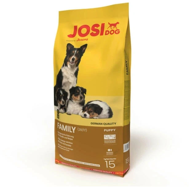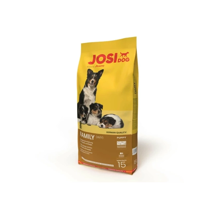 JOSIDOG FAMILY Az egész bagázs számára! A JosiDog Family egy speciális tenyésztáp vemhes kutyáknak és kölykeiknek. A kis kölyökkutyafogak könnyen megbirkóznak az apró falatkákkal, a speciális gluténmentes receptúra pedig a legfinomabb tápanyagokat tartalmazza a kiegyensúlyozott táplálkozás és az egészséges fejlődés érdekében. *Teljes értékű, nagyon kis falatokból álló eledel az anyakutyák és kölykeik számára *Gluténmentes receptúra *A fehérjetartalom 75%-a állati eredetű *A LIFE PROTECT pecsét* jelzi az egyedülálló hatóanyag-összetételt, amely támogatja az erőnlétet és a jó közérzetet. *A sok értékes antioxidáns segíti a sejteket a szabad gyökök elleni küzdelemben *A fontos tápanyagok elősegítik az egészséges fejlődést *A taurin támogatja a szívműködést, a látást és a termékenységet *Hozzáadott szója, cukor vagy tejtermék nélkül *Mesterséges színezékektől, aromáktól és tartósítószerektől mentes Antioxidánsok A gondosan összeválogatott antioxidánsok (A-vitamin, E-vitamin és szelén) védik a sejteket az oxidatív szabad gyökök által okozott károsodástól. Erősítik az immunrendszert, enyhítik a gyulladásos folyamatokat és lassítják az öregedést. Taurin A taurin fontos szerepet játszik a sejtmembránokon keresztül történô kalciumáramlás szabályozásában, egyes szövetek (pl. szívizom) normális mûködésében. A taurin jótékony hatással van a szívmûködésre, a látásra és a fertilitásra, emellett antioxidáns hatása is van. Inulin Az inulin fontos prebiotikum, amely a probiotikum (hasznos bélbaktériumok) tápláléka. Az inulin elősegíti a jótékony hatású bélbaktériumok szaporodását, ezzel hozzájárul az egészséges bélflóra kialakulásához. Glükóz-aminoglikánok A glükóz-aminoglikánok a porcszövetek építô elemei. A glükózamin emeli az ízületekben lévô hialuronsav szintjét, amely alapvetô összetevôje az ízületi folyadéknak (ízületek kenôanyaga). A glükózaminoglikánok ezáltal javítják az ízületek egészségét. Szoptató szuka: Amennyiben szükséges, a táp korlátlan mennyiségben (ad libitum) is adható a szukának. A szuka táplálóanyagszükséglete függ a kölykök számától és a termelt tej mennyiségétől.