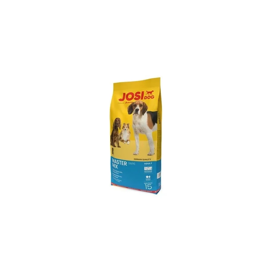A JosiDog Master Mix egy céklával színezett szemcséket tartalamzó teljes értékű táp. A JosiDog Master Mix jellemzői: Céklável színezett szemcsék. Egyedülálló táplálóanyagkombináció, mely segít kutyáját egészségesen és boldogan tartani. Az értékes antioxidánsok nagy aránya védi a sejteket a szabad gyökök ellen. A taurin támogatja a szívműködést, a látást és a fertilitást. A prebiotikus hatású inulin erősíti a bélflórát. Az Új-Zélandi zöldkagylóból származó glükozaminoglikánok (GAG) az ízületek és porcok értékes építőelemei. Összetétel: teljes kiőrlésű kukorica, szárított baromfi fehérje, hús- és csontliszt, állati zsír, rizs, cukorréparost, töpörtyű, kukoricafehérje, hidrolizált baromfi fehérje, hidrolizált állati fehérje, ásványianyagok, cékla 0,1%, őrölt cikória gyökér (természetes inulinforrás), szárított Új-Zélandi zöldhéjú kagyló húsliszt (Perna canaliculus) Analitikai összetétel: nyersfehérje 22 %, nyerszsír 11 %, nyersrost 3,0 %, nyershamu 6,7 %, kalcium 1,5 %, foszfor 1,0 %, nátrium 0,4 % Metabolizálható energia 14,9 MJ/kg; 3569 kcal/kg Tápértékkel rendelkező adalékanyag /kg: A vitamin 17300 NE, D3 vitamin 1300 NE, E vitamin 150 mg, B1 vitamin 10 mg, B2 vitamin 15 mg, B6 vitamin 15 mg, B12 vitamin 70 g, Pantoténsav 35 mg, Niacin 60 mg, Folsav 4 mg, L-karnitin 200 mg, Taurin 1000 mg, Biotin 650 g, Vas (vas-szulfát monohidrát) 180 mg, Cink (glicin-cinkkelát, hidrát) 160 mg, Mangán (mangán-(II)-oxid) 16 mg, Réz (glicin-rézkelát, hidrát) 20 mg, Jód (kalcium-jodát) 2 mg, Szelén (nátrium-szelenit) 0,25 mg Antioxidánsok: természetes eredetű tokoferol-kivonat Tárolási körülmények: Száraz, hűvös helyen tartandó. Ne tegye ki közvetlen napsütésnek.