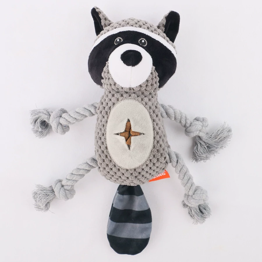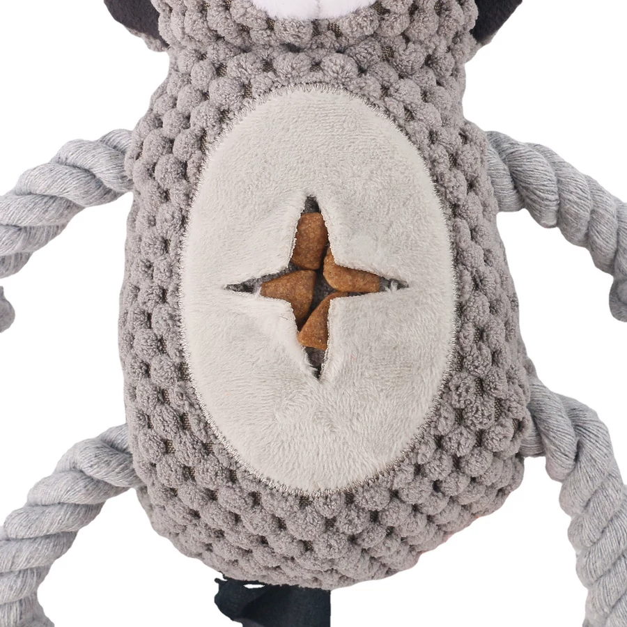 Különleges plüss mosómedve játék kutyáknak, beépített jutalomfalat-zsebbel az extra szórakozásért.