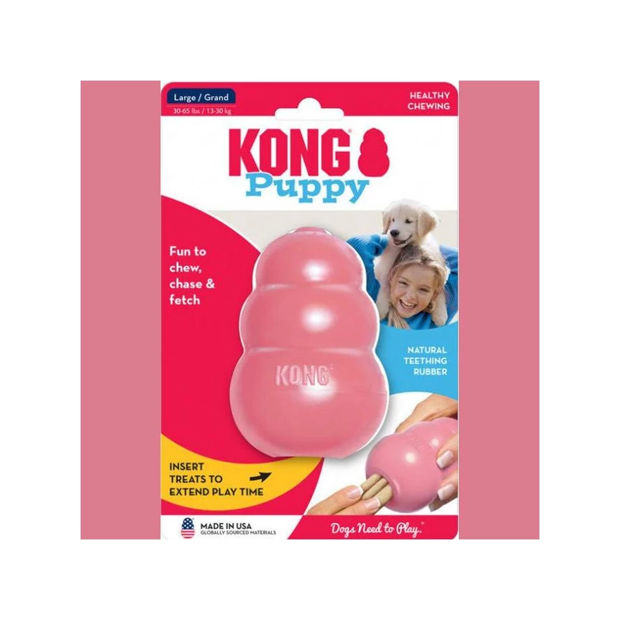 A KONG Puppy nemcsak szórakoztat, hanem támogatja a rágóizmok és a fogak egészséges fejlődését is. A belseje megtölthető finomságokkal, ami még motiváltabbá teszi a kölyköket a játékra vagy segíti őket a szobatisztaságra, önállóságra való nevelésben. Ideális választás kicsi és közepes testű kutyák számára, akik még tanulják a világot!