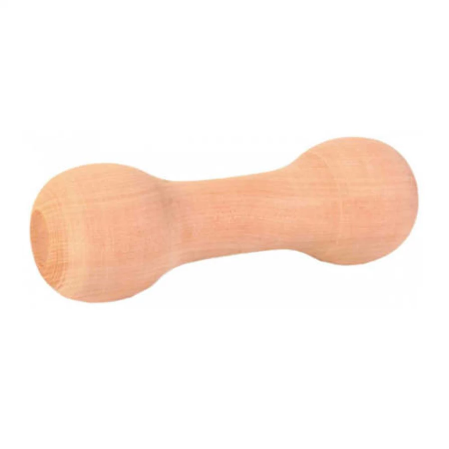 Az ergonomikus súlyzóforma könnyen megfogható a kutyának, és a gazdi is kényelmesen dobhatja. Fából készült, így nem sérti a kutya fogát vagy ínyét, ráadásul időjárásálló, így akár vízparti játékhoz is viheted.