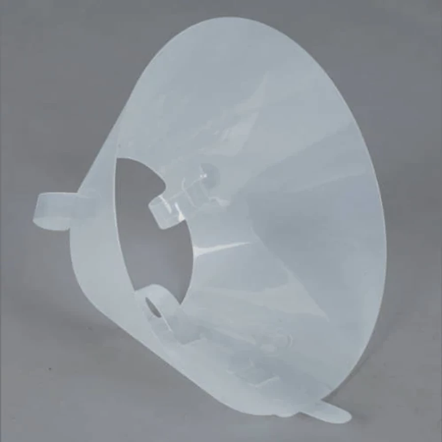Könnyű, áttetsző műanyagból készült egészségügyi gallér sérült vagy műtéten átesett kutyáknak. Kíméletesen megakadályozza, hogy a kutya hátrafordulva nyalogatni vagy rágni tudja sebeit.